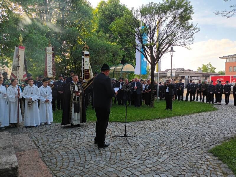 Der Veteranen- und Kriegerverein Schloßberg würdigte im Rahmen einer Gedenkfeier das 100 Jahre bestehende Kriegerdenkmal im Friedhof Schloßberg und konnte dabei auch Pius Graf, den Vorstand der IG Rosenheim begrüßen. Trotz der hohen Inflation und schwierigen wirtschaftlichen Lage hatte sich der Verein damals entschlossen, ein Denkmal für die im 1. Weltkrieg gefallenen Soldaten zu errichten. Diakon Hans Mair zelebrierte die Gedenkfeier am Denkmal. Musikalisch wurde die Feier von der Blaskapelle Stephanskirchen begleitet. 2. Bürgermeister Robert Zehetmaier und der 1. Vorstand des Veteranen- und Kriegervereins Alexander Holewa stellten in ihren Grußworten den Bezug zum aktuellen Zeitgeschehen her. An der Feier nahmen auch die Veteranenvereine Stephanskirchen, Zaisering-Leonhardspfunzen und Pfaffenhofen sowie die Feuerwehr Schloßberg teil.