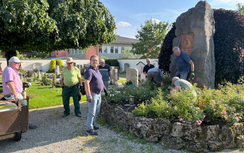 Herrichten vom Kriegerdenkmal für die 100 Jahrfeier von den Vereinsmitgliedern