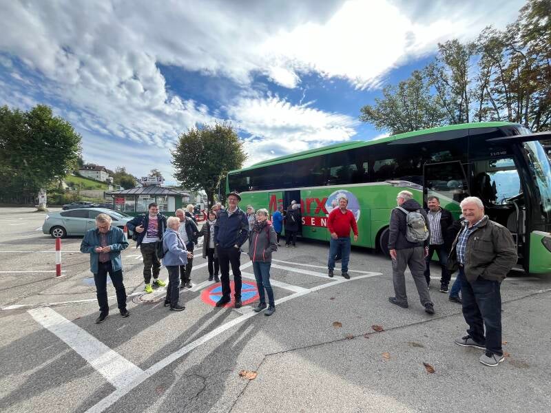 Der Jahresausflug führte uns am 26. September 2025 ins Salzkammergut an den Wolfgangsee. Auch heuer hatten wir wieder Wetterglück beim Ausflug, stellte Vorstand Alexander Holewa fest und freute sich über einen vollen Bus. Vielen Dank an die beiden Sponsoren Wolfgang Dreher und Peter Friesacher für die Butterbrezen und den Kaffee von der Fa. Marx bei der Frühstückspause. Nach der Kaffeepause fuhr uns der Bus weiter nach St. Wolfgang. Mit einem kleinen Spaziergang durch den Ort ging es weiter zum Mittagessen in die Dorfalm. Schiff Ahoi hieß es anschließend. Ein Schiff der weißen Flotte vom Wolfgangsee brachte uns nach St. Gilgen. Dort angekommen stand der Besuch eines Cafes oder ein Rundgang durch den Ort auf dem Programm. Ein schöner Ausflug ging am frühen Abend in Schloßberg zu Ende. (Verfasser Text A. Scheibenzuber)