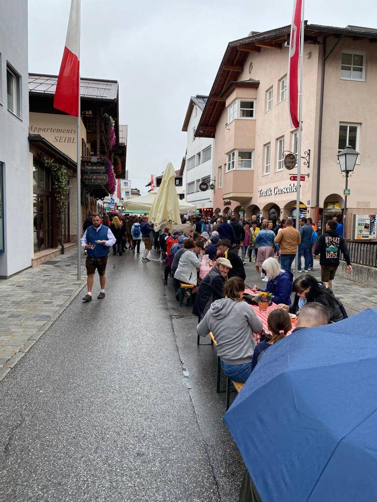 Der Jahresausflug des Veteranen- und Kriegervereins Schloßberg führte in diesem Jahr nach St. Johann in Tirol zum Knödelfest. Noch bei Regen machte sich der Bus der Fa. Astl auf die Fahrt. Die Frühstückspause mit Butterbrezen von der Fa. Miedl und Kaffee konnten wir dankenswerterweise im Wintergarten der Fa. Astl in Oberaudorf verbringen. Danach ging es weiter zum Knödelfest in St. Johann. Bei nun besserem Wetter gab es auf der Hauptstraße und den anliegenden Gasthäusern viele verschiedene Knödelvariationen zum probieren. Der Besucherandrang war enorm und überraschte nicht nur uns. Weiter ging es mit einer „Überlandpartie“ zu einem gemütlichen Ausklang beim Weßnerhof in Marquartstein. Trotz des anfangs schlechten Wetters war es ein gelungener Ausflug.
